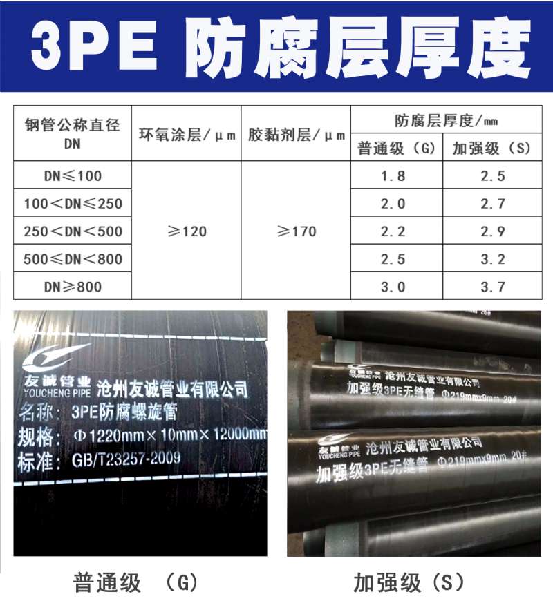 三層防腐結(jié)構(gòu)組成包括: 熔結(jié)環(huán)氧粉末底層、聚合物膠粘劑中間層和聚乙烯面層,其中環(huán)氧粉末底層的作用是形成連續(xù)的涂膜,與鋼管表面粘結(jié)、固化而提供良好的附著力,并具有很好的耐化學(xué)品性和抗陰極剝離能力;聚合物膠粘劑的作用是在環(huán)氧粉末涂料膠化之前與之融合,并與外面的聚乙烯層粘結(jié)