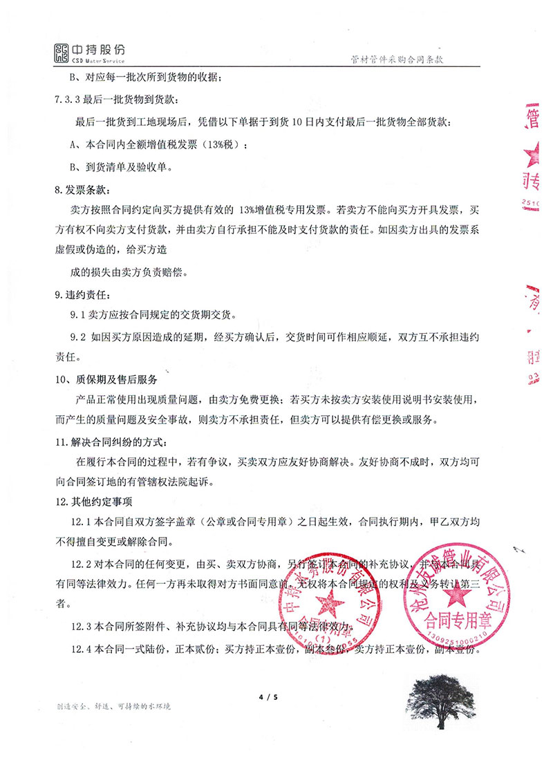 2019年9月份,友誠(chéng)管業(yè)與中持水務(wù)股份有限公司(上市公司),簽訂了原陽(yáng)縣污水處理廠項(xiàng)目的防腐螺旋鋼管合同,非常感謝貴公司對(duì)我們的信任,我們也一如即讓的做好每一支鋼管